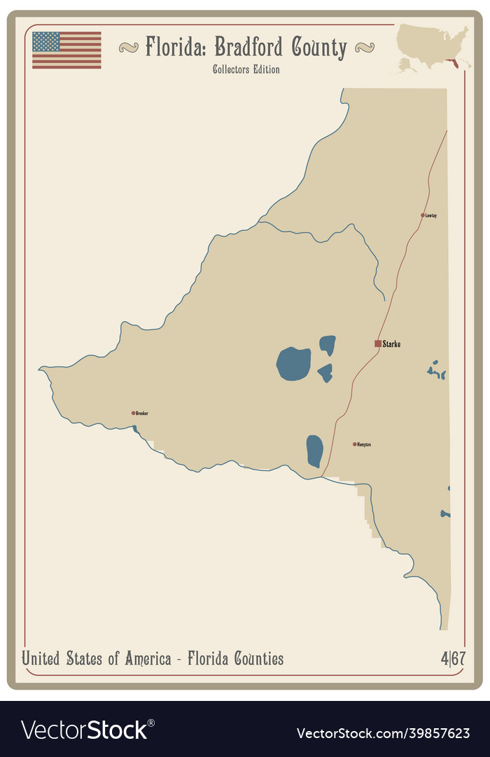Map of bradford county in florida Royalty Free Vector Image