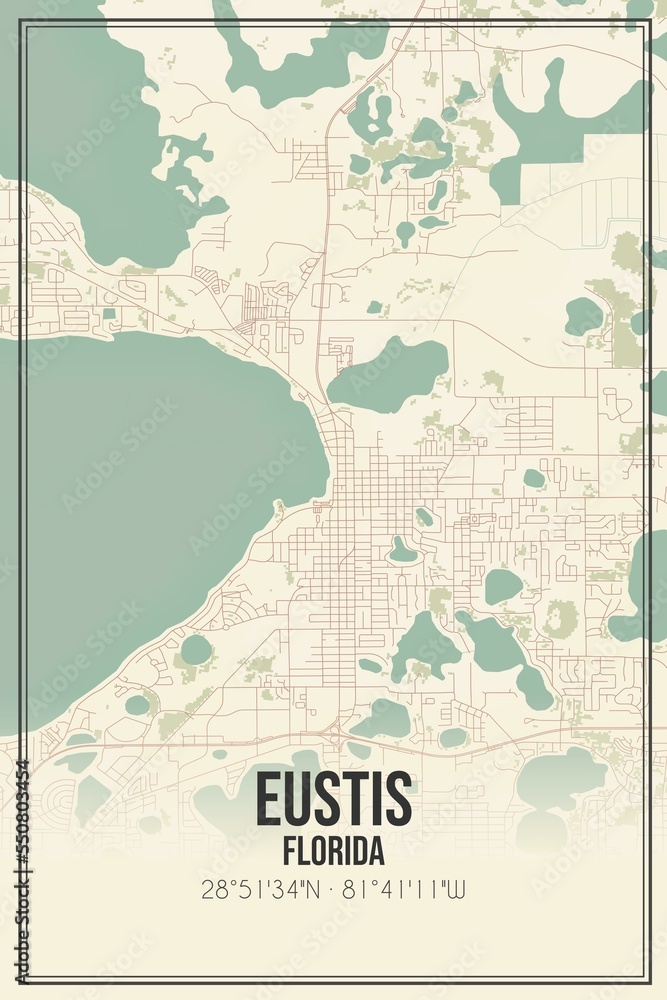 Retro US city map of Eustis, Florida. Vintage street map. Stock