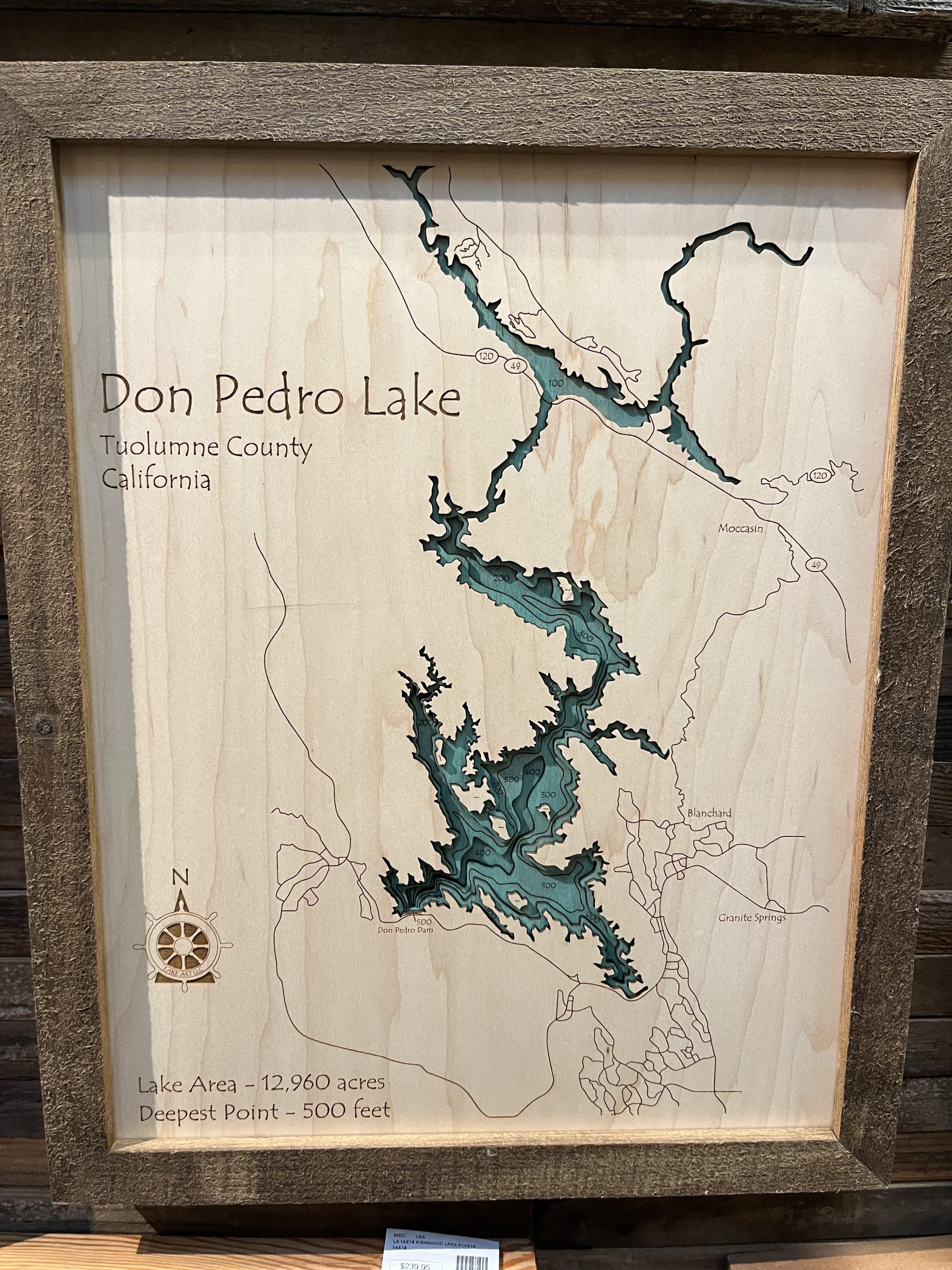 Don Pedro Lake, California Laser Cut Wood Map| Personal