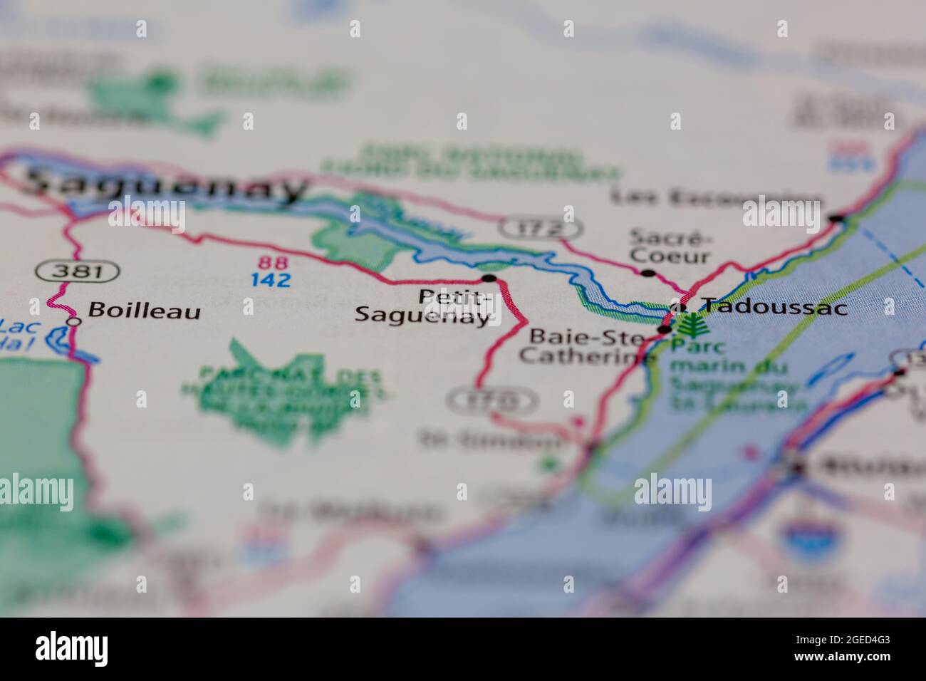 Petit Saguenay Quebec Canada shown on a road map or Geography map
